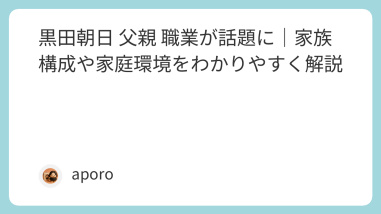 黒田朝日 父親 職業が話題に|家族構成や家庭環境をわかりやすく解説